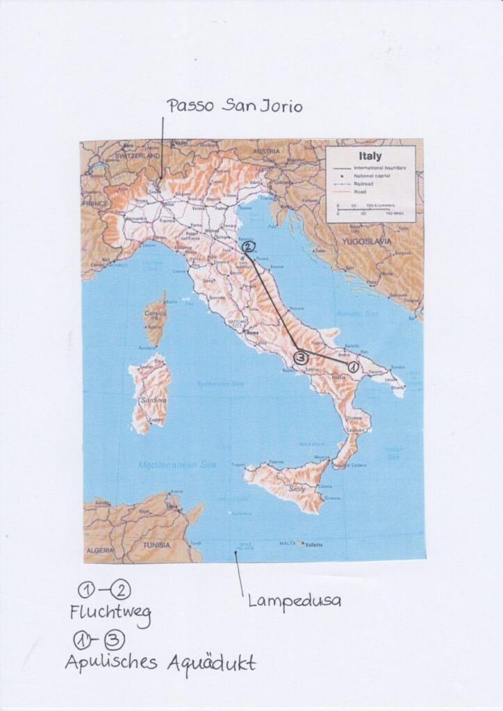 Der Fluchtweg von Bari entlang dem Apulischen Aquädukt und der Küste bis nach Rimini.