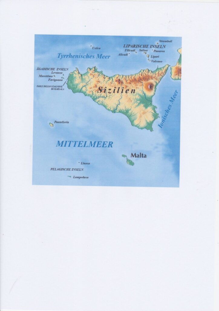 Die Lage der Inseln Lampedusa, Pantelleria und Malta.